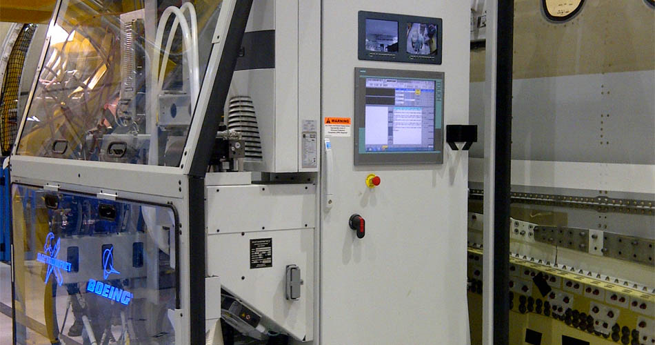 Over 1200 large holes ranging from 3/8" - 3/4" in diameter need to be drilled into the side-of-body fittings on the 787 fuselage over four different assembly lines. The material stacks are 4" thick and consist of several layers of titanium and CFRP which must be drilled for one-up-assembly (meaning no deburr). These parameters stressed the manual drilling process in meeting hole quality and build times. The problem is complicated by the location of the fitting, which is over 4 meters above the factory floor.